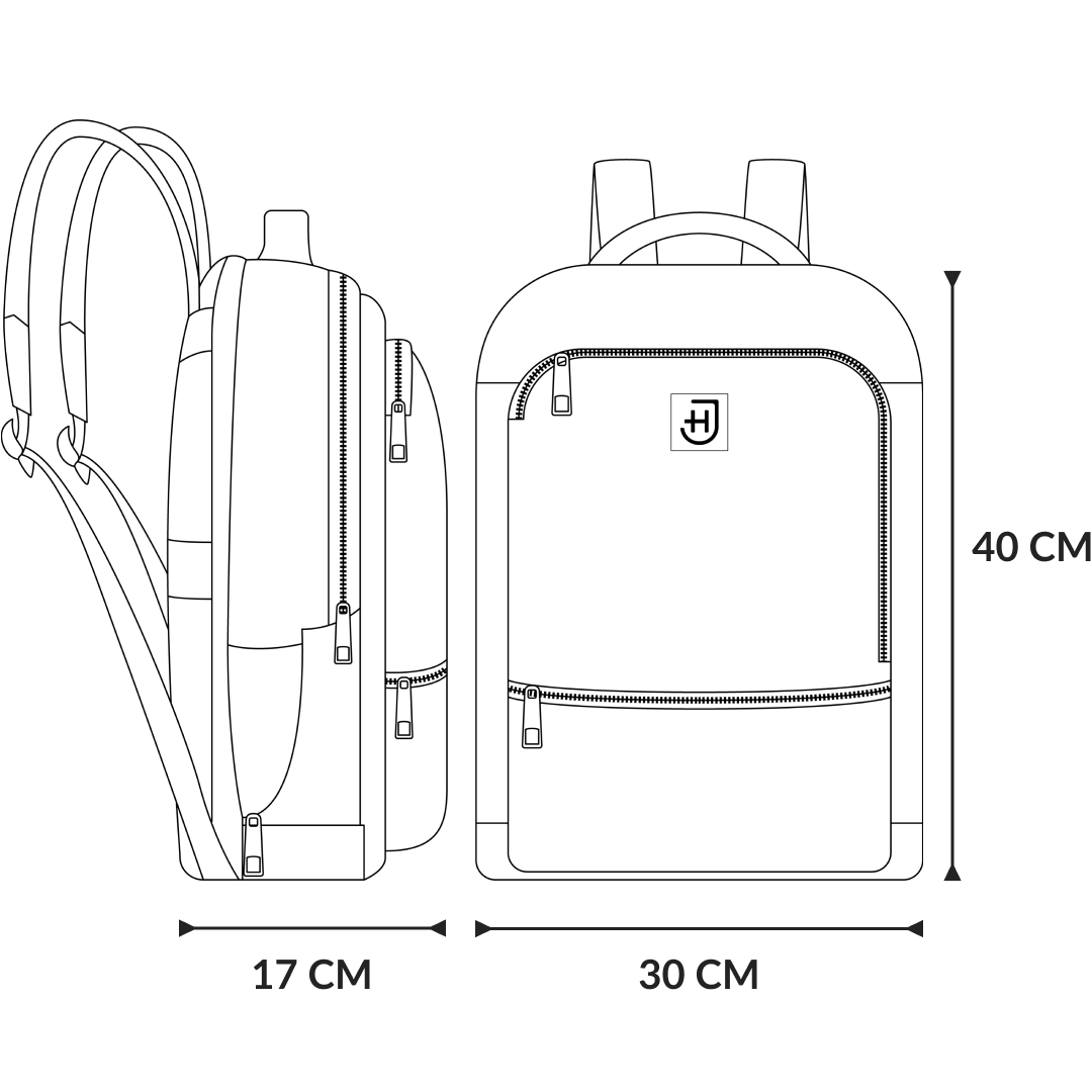 - Compartimente pentru pixuri, powerbank și pașaport