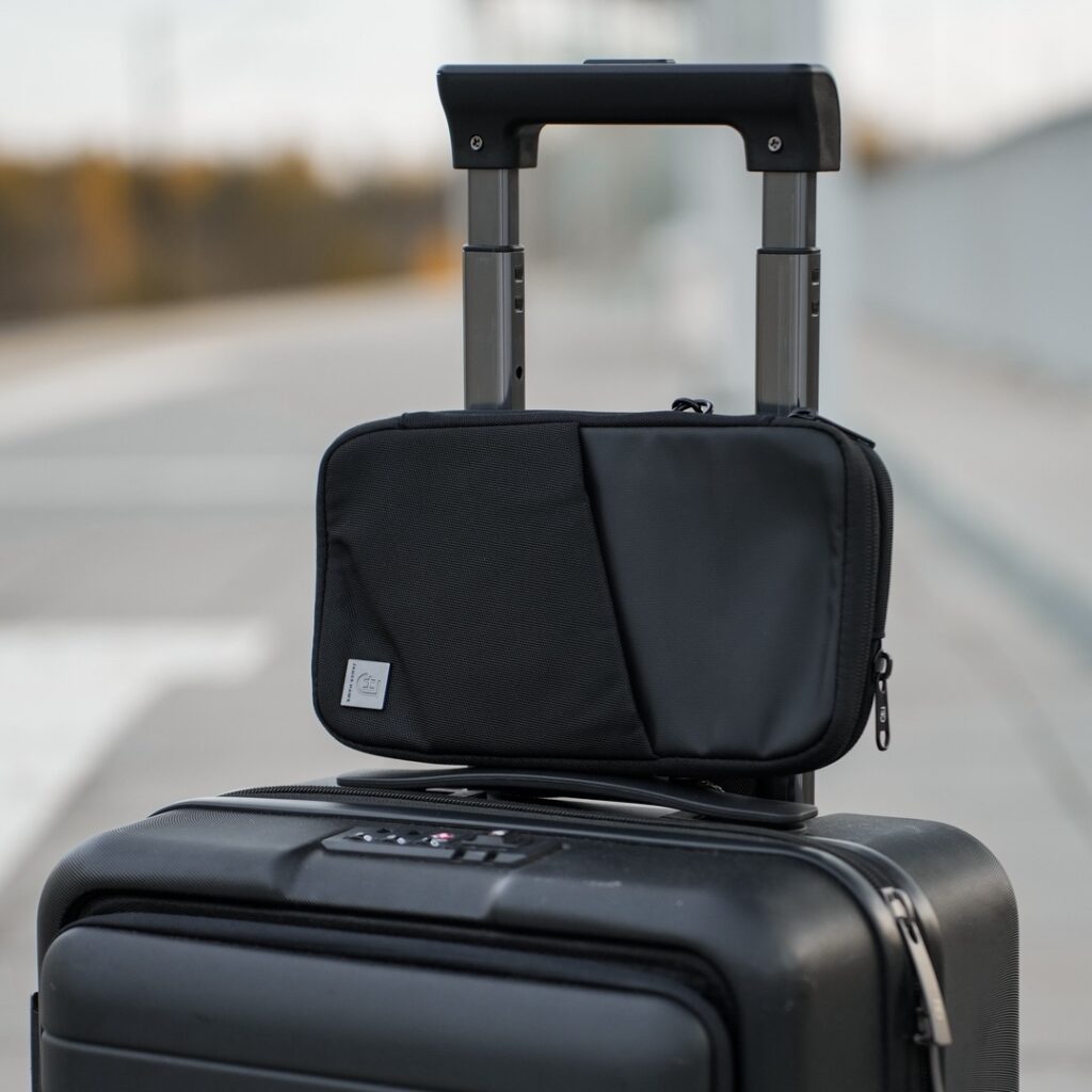 - Buzunar frontal cu acces rapid pentru biletul de avion și pașaport